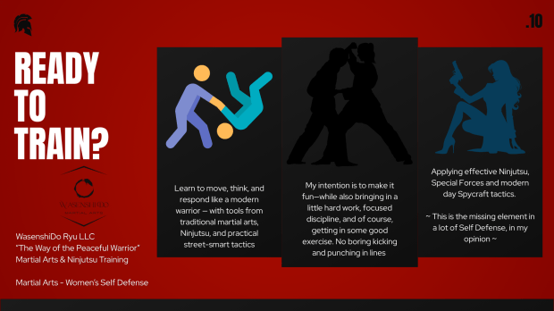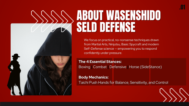 What you’re discovering here has been twenty-five years in the making. Wasenshido Ryu draws not only on traditional martial arts like Sport Karate, Tae Kwon Do (in which I earned my black belt within four years). Next route I took was Ninjutsu, American Ninjitsu, Jiu Jitsu, Boxing, Kickboxing, Muay Thai, Krav Maga, Kung Fu, and Judo, but also on hard-earned experience with Special Forces techniques and personal security training—including insights from former CIA officers Andrew Bustamante, Jason Hanson, and Evy Poumpouras.